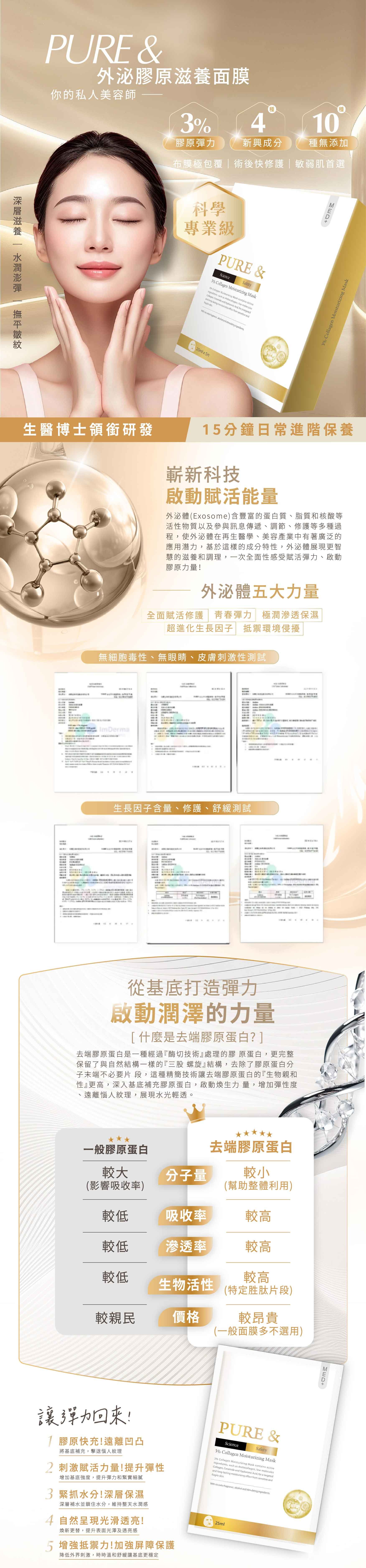 【科研級外泌體修護|醫研團隊高濃度配方】Pure&外泌3%膠原滋養面膜(25ml/片*5片/盒)